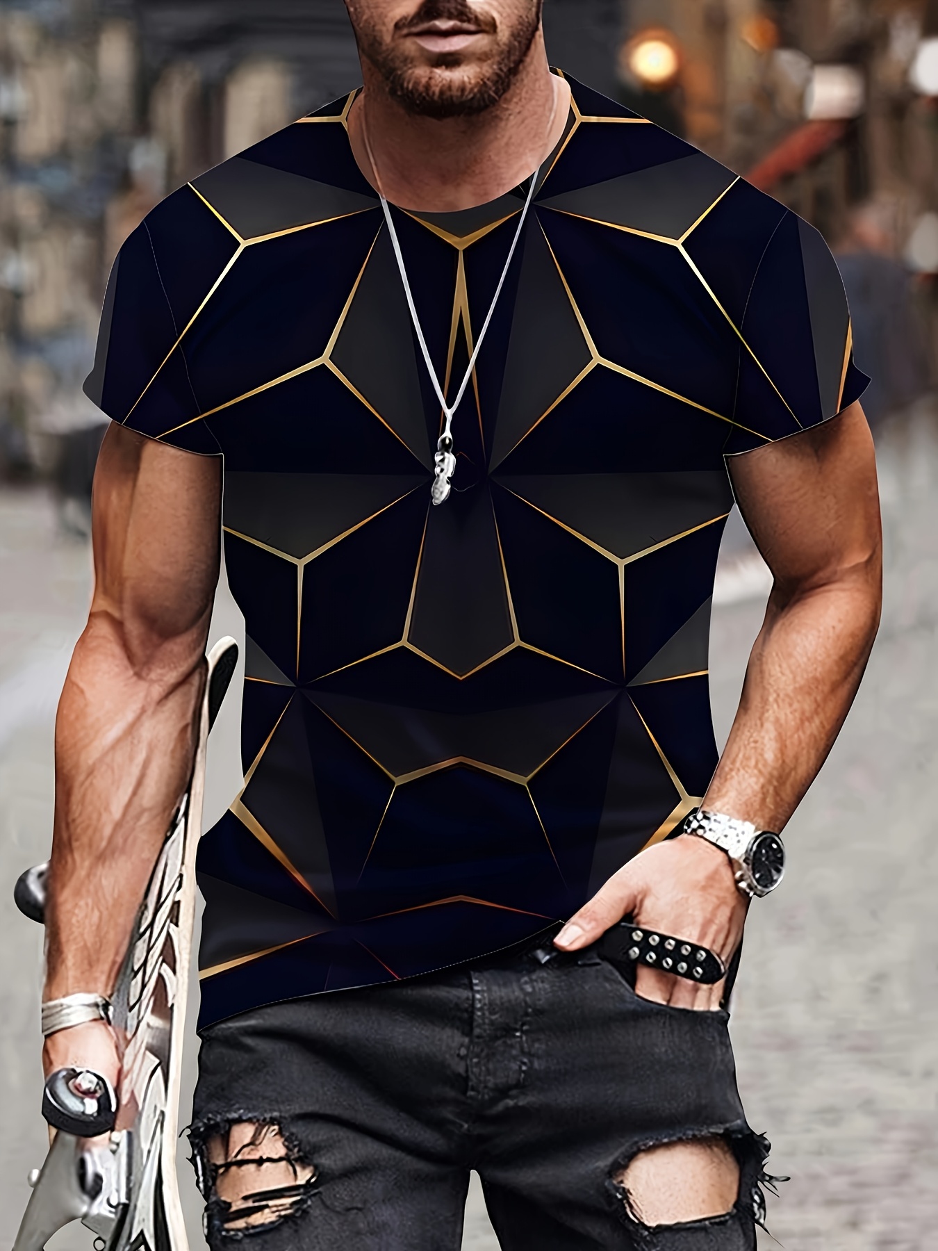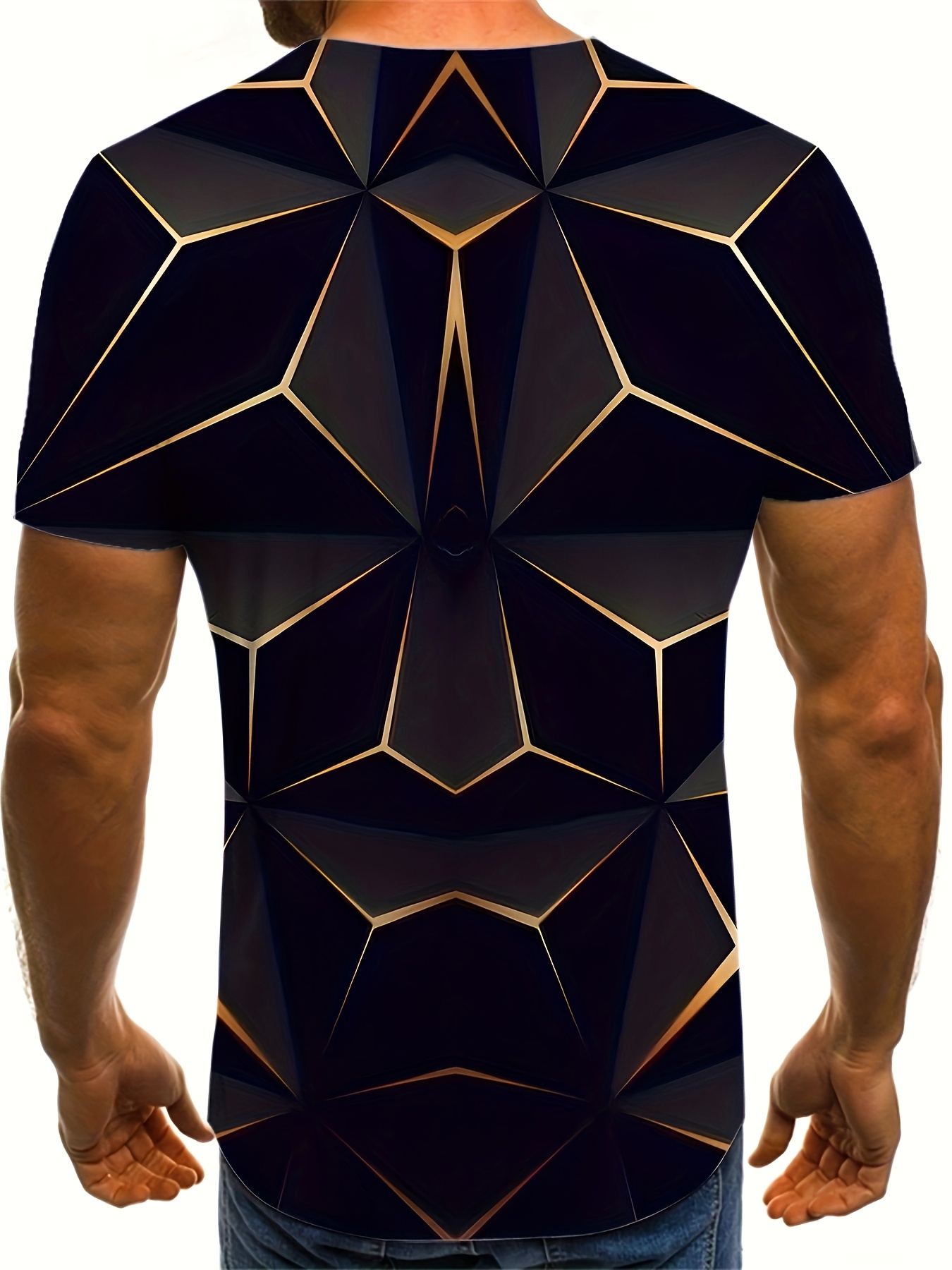 1pc Men'S Summer Fashion 3D Geometric Print T-Shirt, Casual Crew Neck, Polyester Knit Fabric with Slight Stretch, Regular Fit