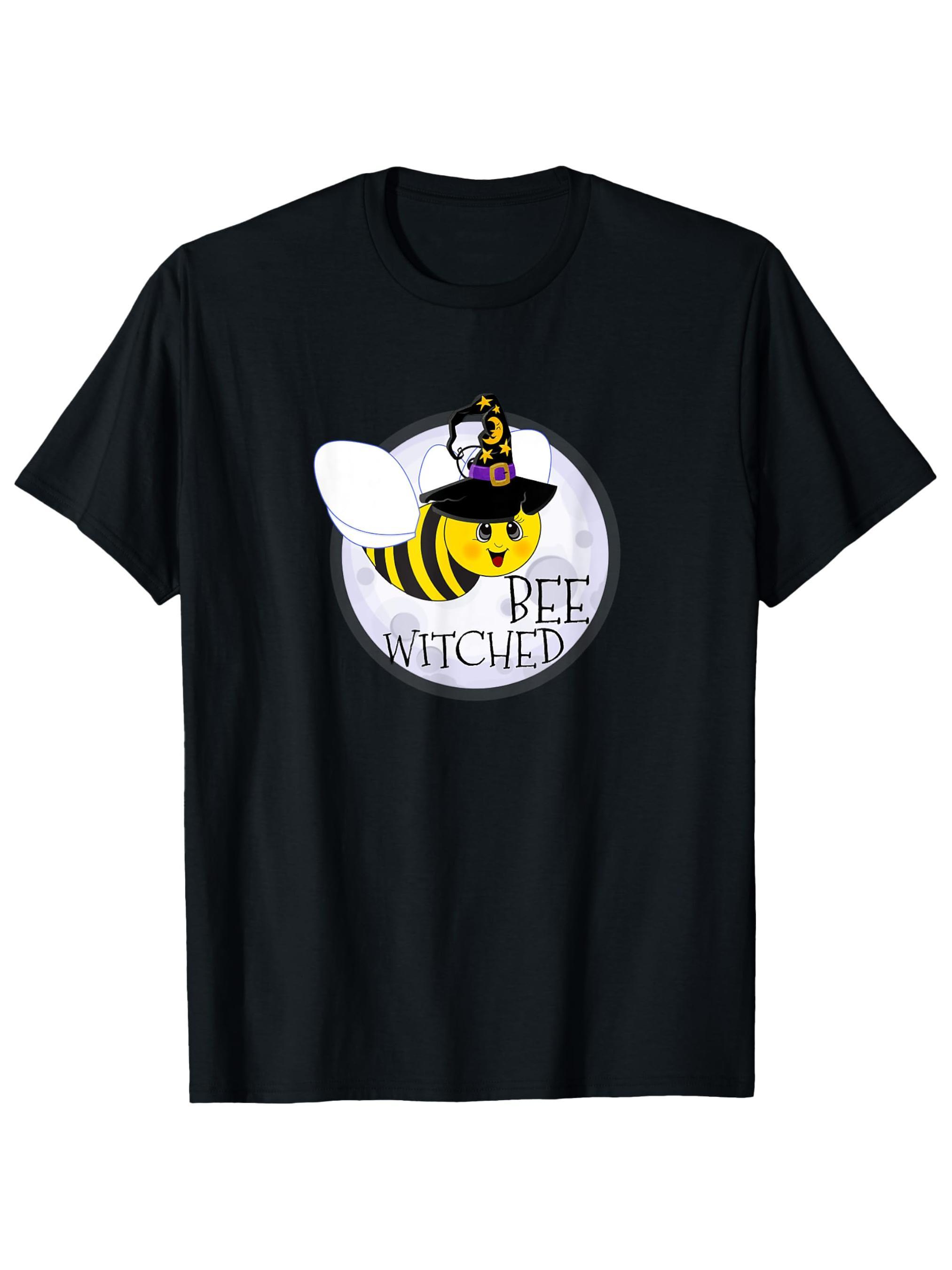 Men'S Casual Crew Neck T-Shirt with Bee Witched Graphic, Knit Fabric, Regular Fit, 100% Cotton, Summer Wear, Slight Stretch, Plant Pattern, 180g/m², for Daily & Weekend Casual - Black
