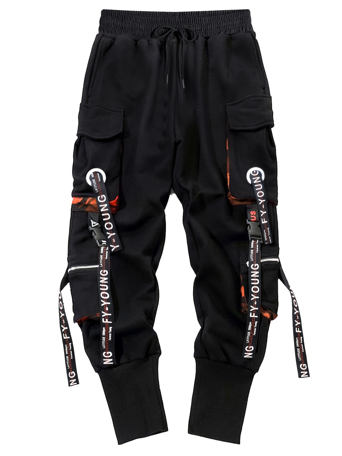 Men's Cargo Joggers, Loose Fit Tapered Leg Trousers With Straps And Ribbed Cuffs, Sports Drawstring Pants For Streetwear