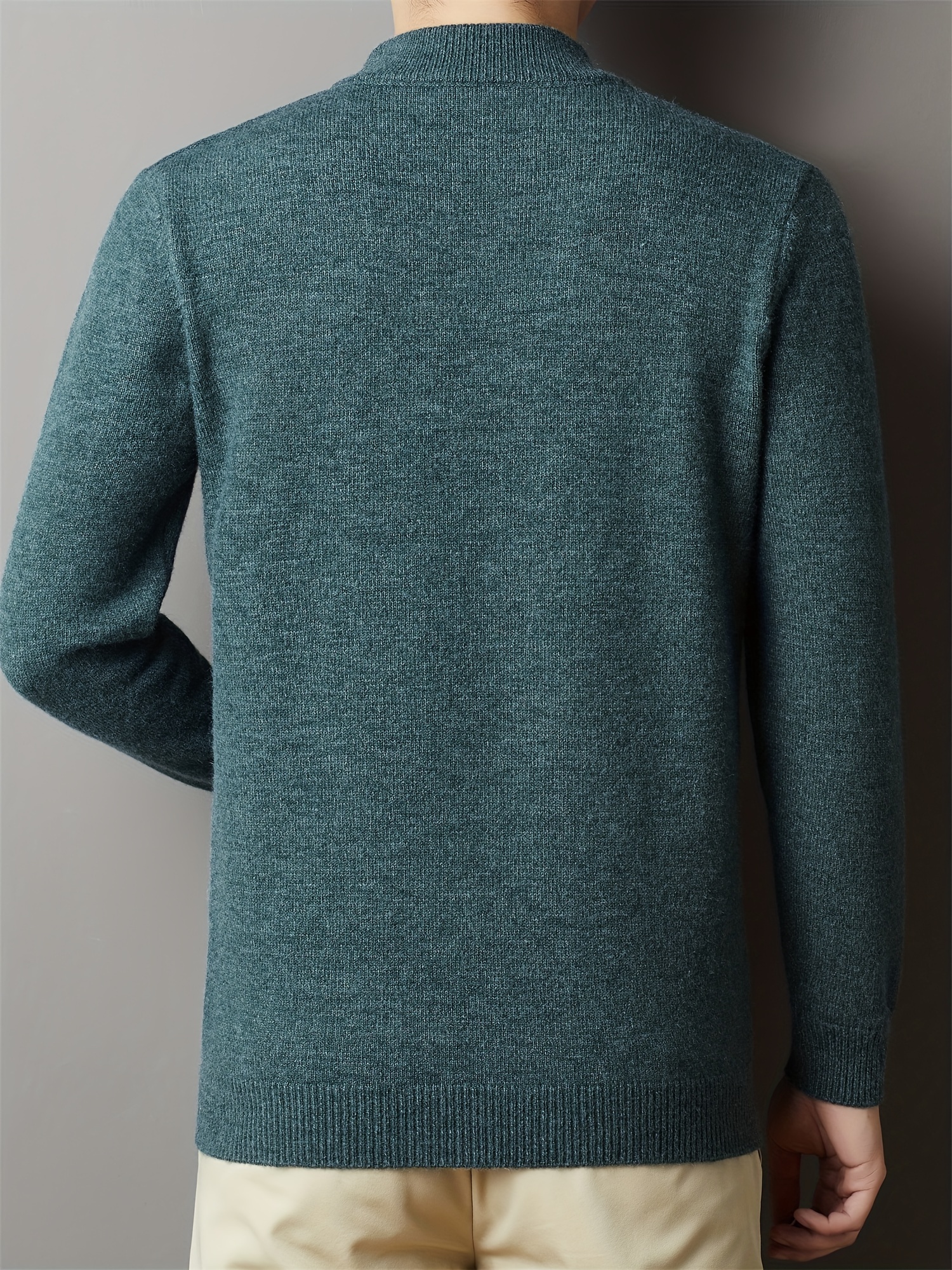 Cozy & Stylish Men's Thick Knit Sweater - Solid Color, Round Neck, Long Sleeve Pullover for Fall/Winter | Soft Polyester Blend