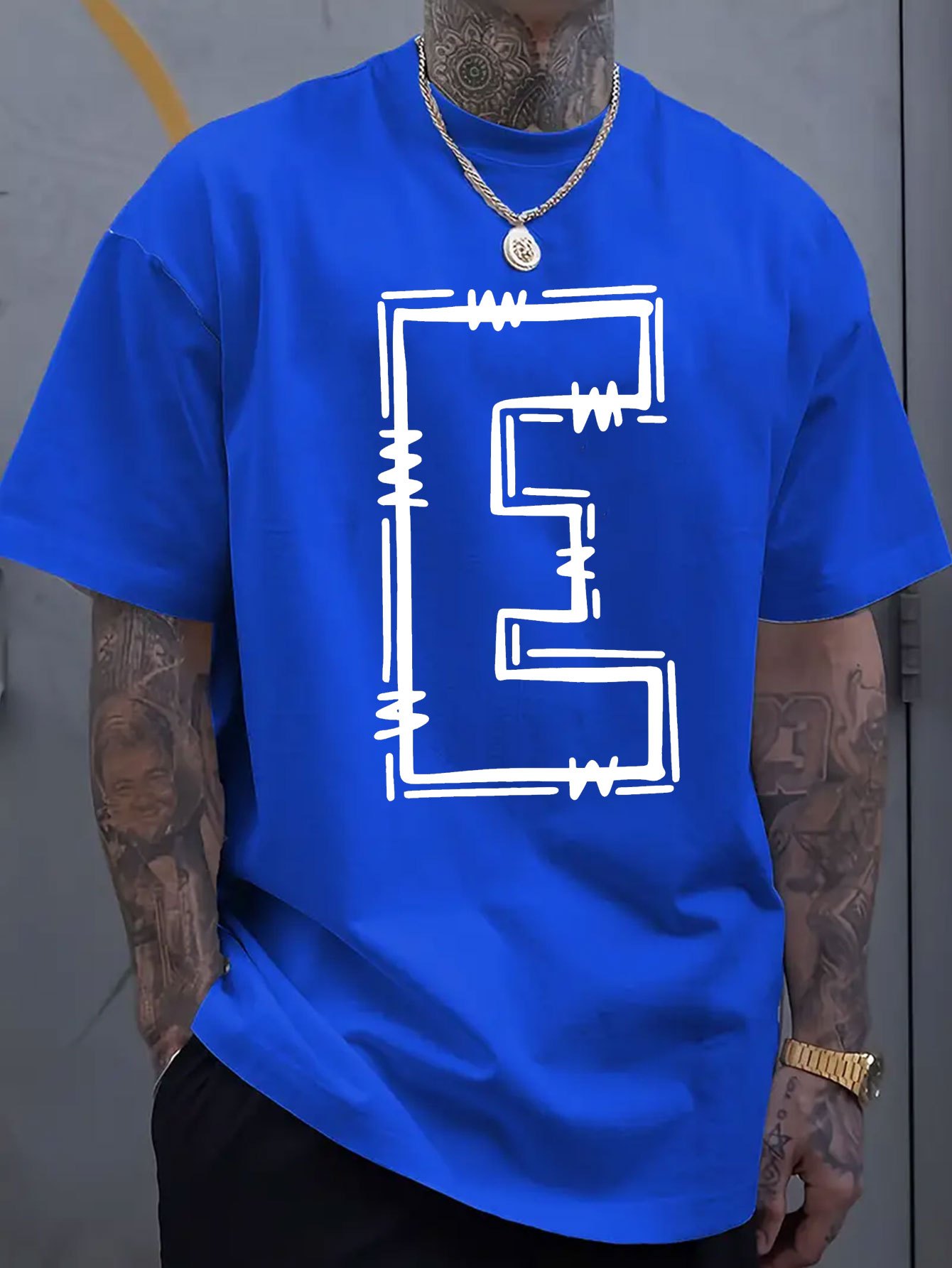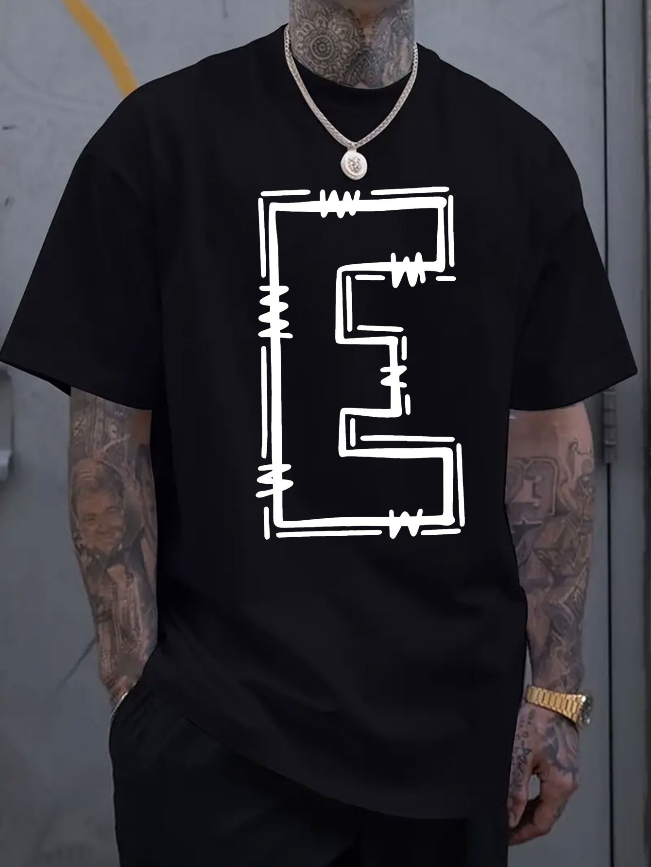 Simple and stylish E-letter printed men's round neck short sleeved T-shirt, comfortable and breathable casual sports top suitable for spring and summer vacation leisure