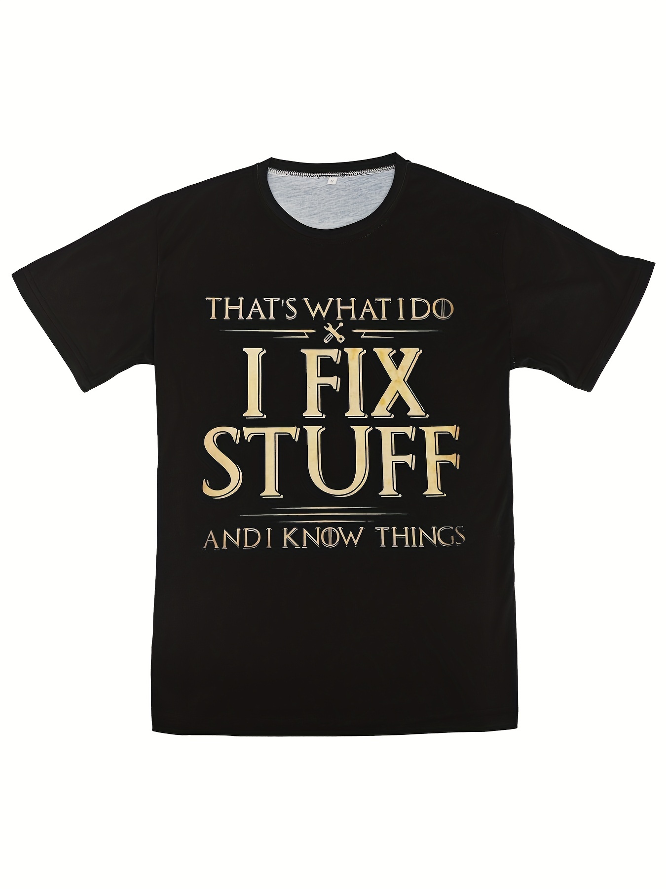 Vibrant Graphic Tee - 3D Digital Pattern Print, Short Sleeves, Comfortable Pullover, Casual Summer Clothing for Men - Unique Fix Stuff Slogan Design, Breathable Fabric, Relaxed Fit