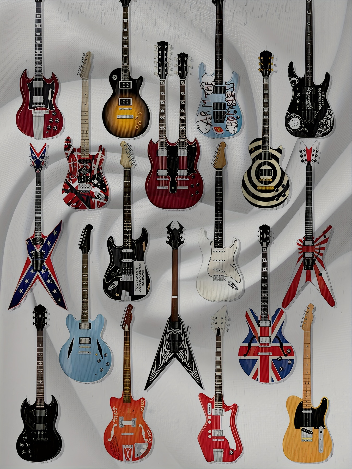 Men's Vintage-Inspired Guitar Print Casual Pants - Loose Fit, Drawstring Waist, Polyester, Machine Washable
