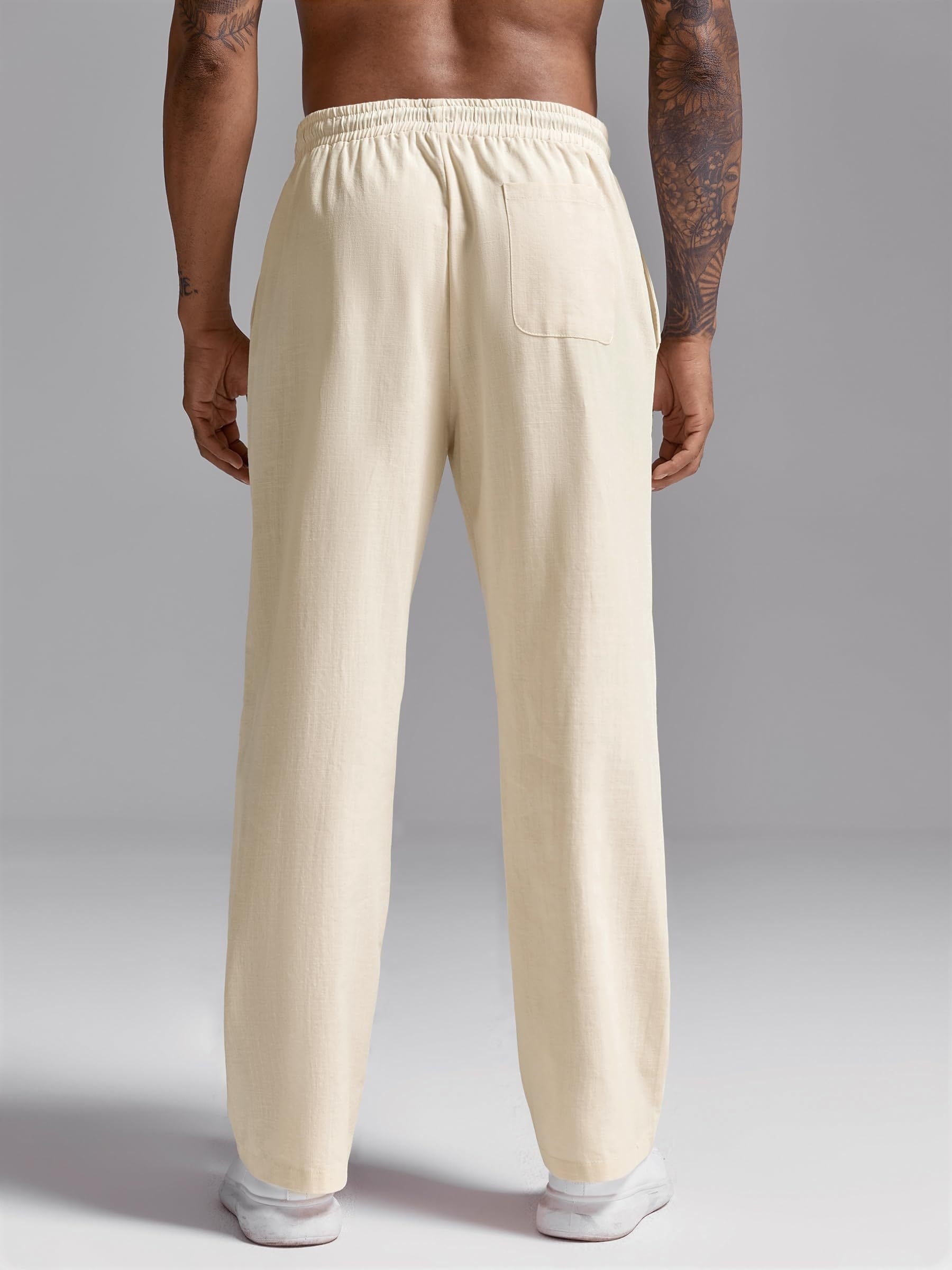 Mens Cotton Linen Pants Casual Pleated Drawstring Elastic Waist Loose Fit Beach Yoga Pants With Pockets