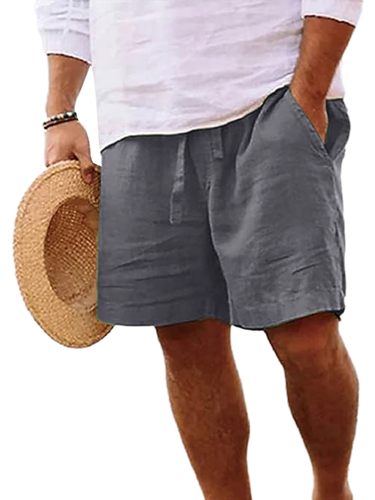 1pc Men'S Casual Linen Blend Shorts - Solid Color, Drawstring Elastic Waist, Breathable Slight Stretch Fabric, Loose Fit Beach Shorts