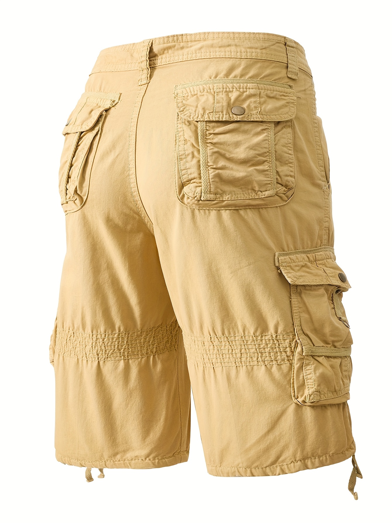 1pc Men'S Cotton Cargo Shorts, Multi-Pocket Utility Workwear, Solid Color, Street Style, Regular Fit, Woven Fabric, Non-Stretch - Outdoor Casual Short Pants
